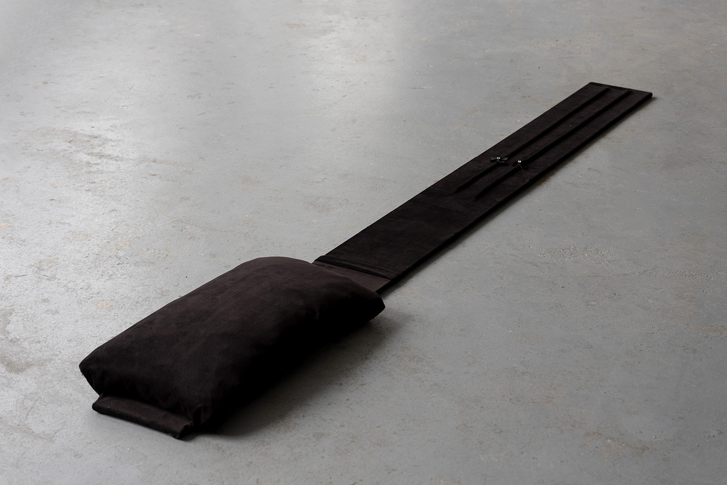 - Untitled, 2021, steel, sand, wool fabric, 10 x 192 x 25 cm